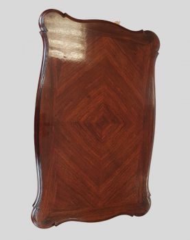 C'est une table de milieu : les 4 traverses en palissandre massif sont finement sculptées de coquilles et de feuilles d'acanthe.